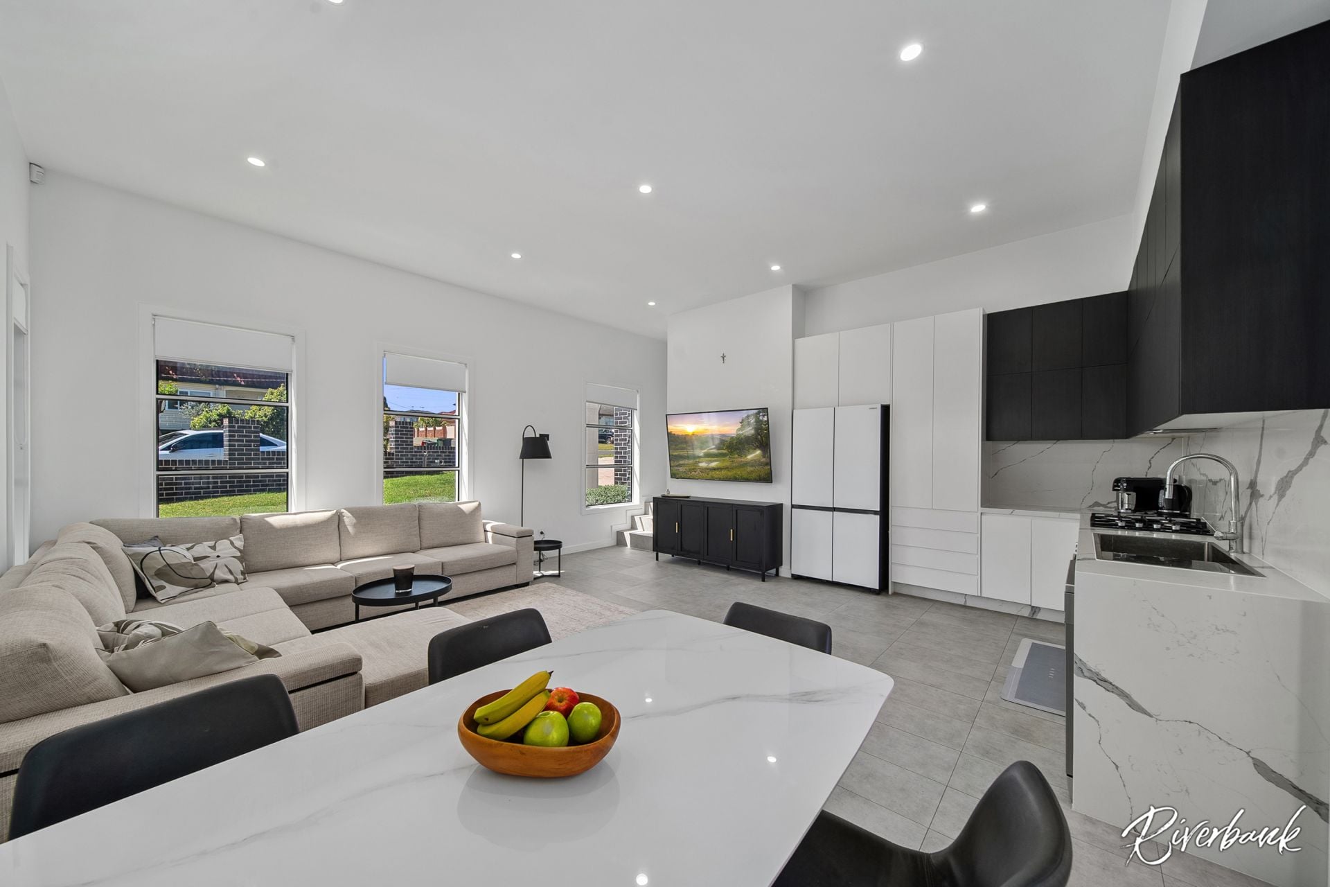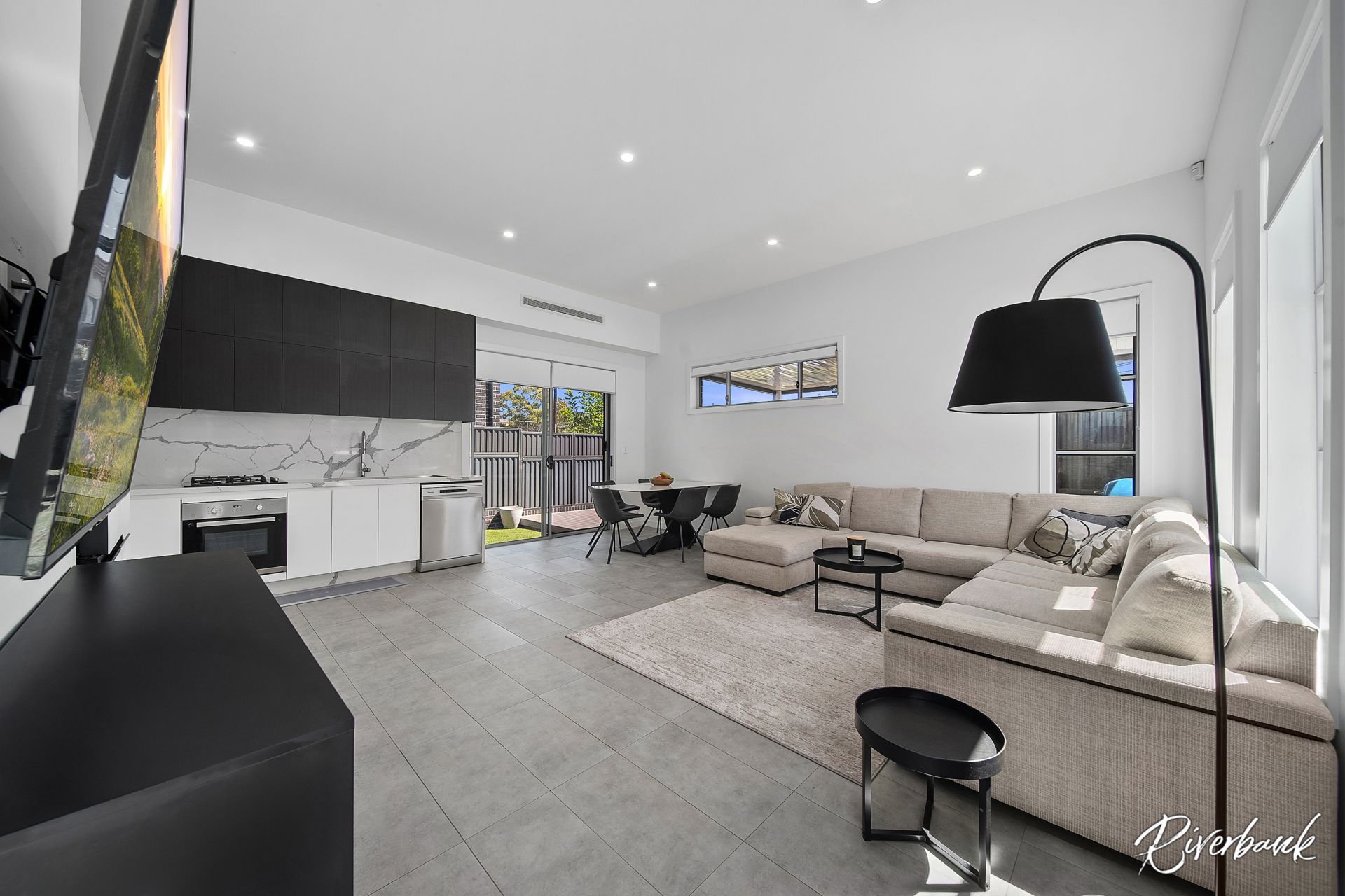 Open-plan living and dining with a second family area